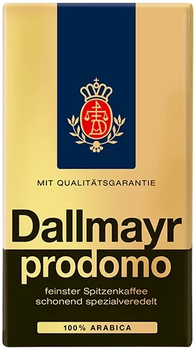 Dallmayr prodomo – iš Vokietijos, Miuncheno Karališkųjų rūmų. 100% Arabica, skirta tikriems kavos gurmanams, pasižymi išskirtiniu skoniu, subtiliu rūgštumu, bei tobulu aromatu. Tai puikus kokybės ir kainos santykis. Kava yra specialiai apdorojama siekiant pašalinti dirgiklius ir kartumą, išlaikant kofeino teikiamus privalumus. Taigi, tiems, kurie yra jautrūs kavos dirgikliams, ši kava puikiai tiks!