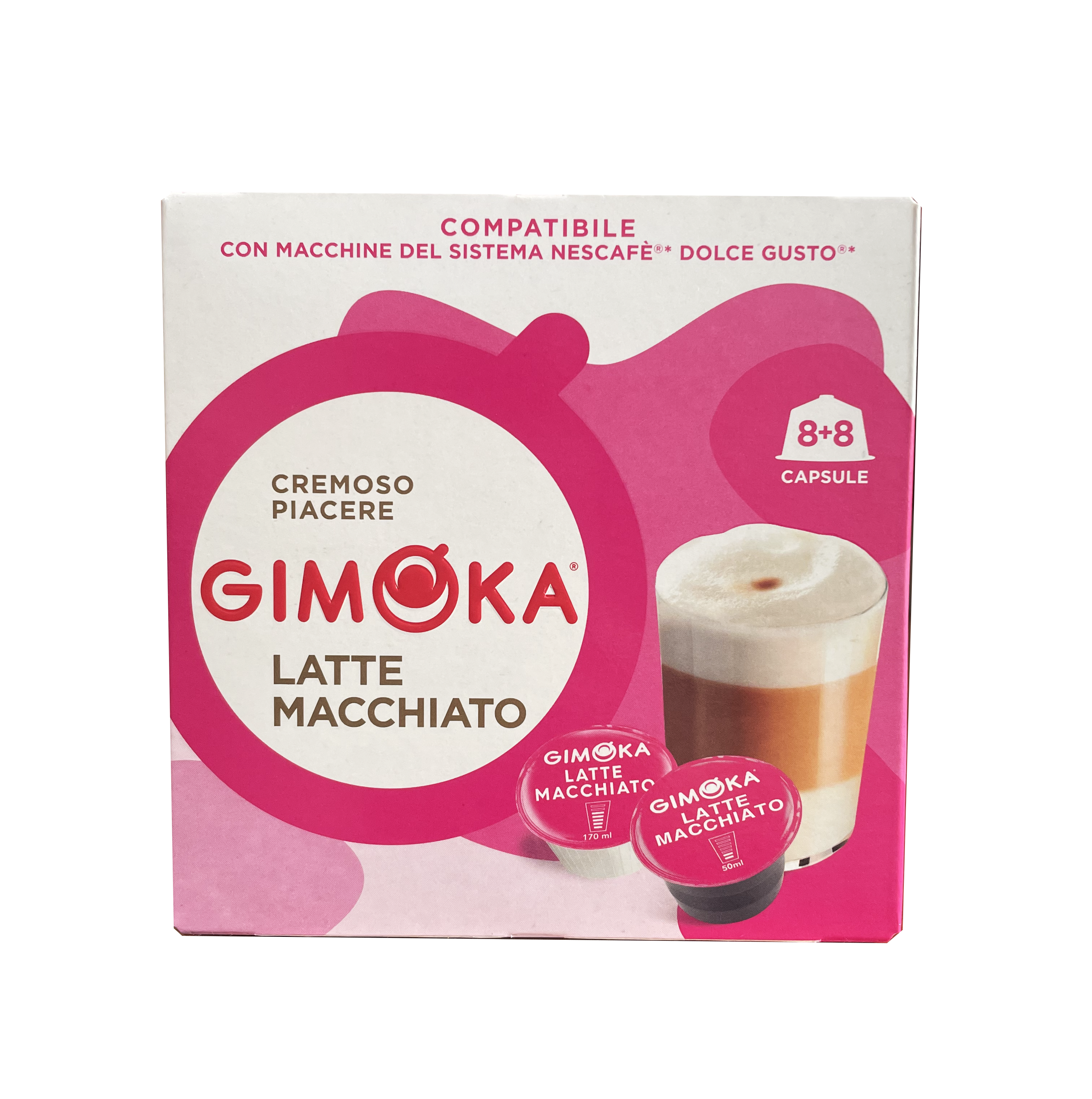 Gimoka Latte Macchiato gaminama iš klasikinės „Arabica“ rūšies kavos, kuri suteikia jai puikų aromatą, o pupelių skrudinimas stiprų, intensyvų skonį. Tvirto charakterio kavos ir  saldus pieno mišinys leidžia mėgautis šia kava bet kuriuo paros metu.