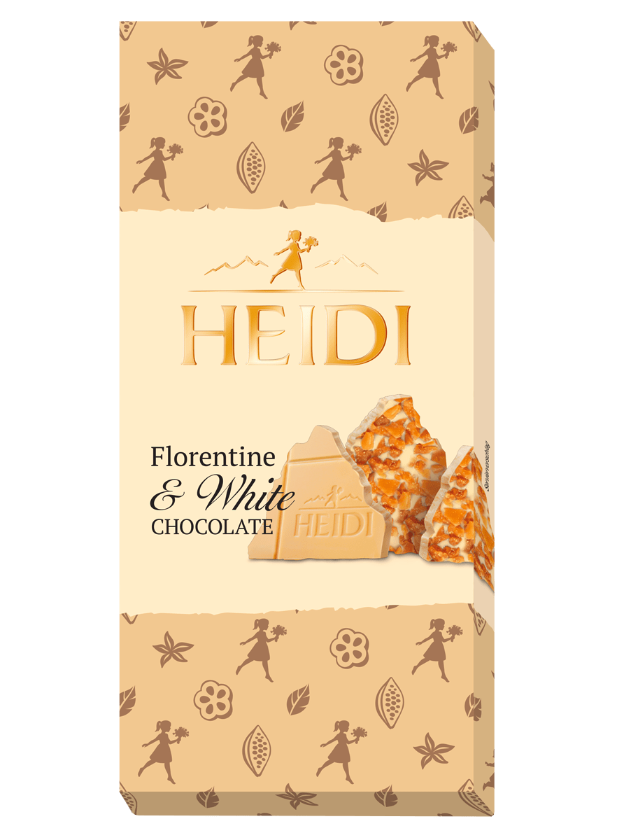 Heidi Florentine White – tai išskirtinis baltasis šokoladas, po kuriuo slepiasi traškus ir karamelizuotas migdolų sluoksnis. Produktas jungia švelnų baltą šokoladą ir karamelizuotą migdolų masę, suteikiančią tekstūrą ir gurmanišką pojūtį.