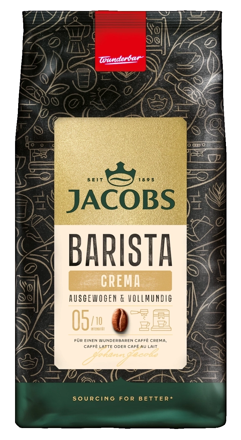 Jacobs Barista Editions CREMA –  šios kavos pupelės skrudinamos lėčiau, ilgiau ir žemesnėje nei įprastai temperatūroje, o vidutinis skrudinimas suteikia joms švelnų, subalansuotą skonį. Puikus pasirinkimas, jei mėgstate caffé crema, caffé latte ir kitas kavas su pienu.
