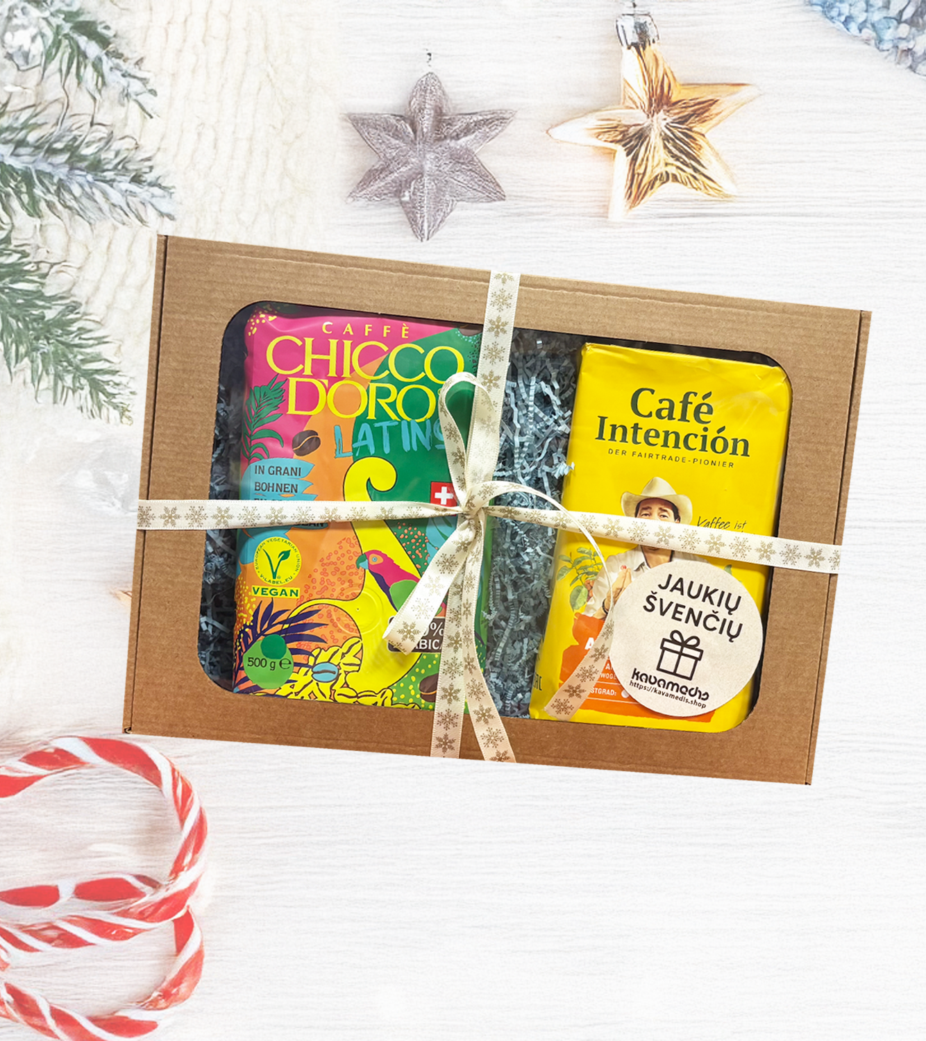 Dovanokite šilumą ir aromatą – šis elegantiškai supakuotas kavos rinkinys puikiai tiks tiek tikram gurmanui, tiek žmogui, mėgstančiam ramias, jaukias akimirkas su puodeliu kavos.