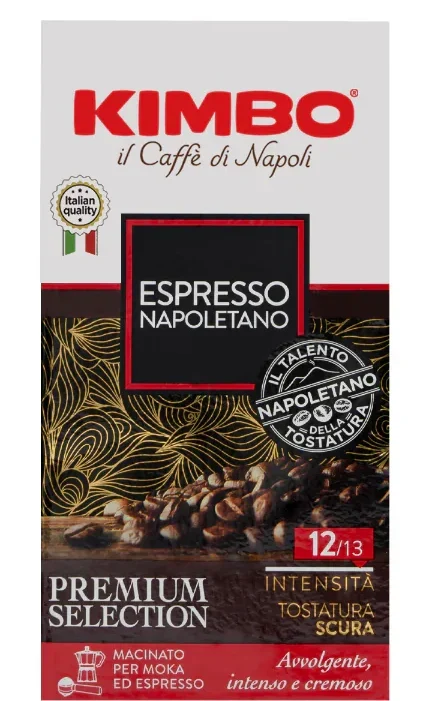 Kimbo Espresso Napoletano – maltos kavos mišinys, skrudintas pagal tikrą neapolietišką tradiciją. Tamsaus skrudinimo, intensyvus, sodrus skonis su horkos šokolado, riežutų ir švelnių skrudintos duonos natos. Puikiai tinka espresso, moka ar filtruotai kavai. Mėgstantiems ryškią, aromatingą ir energingą kavą.