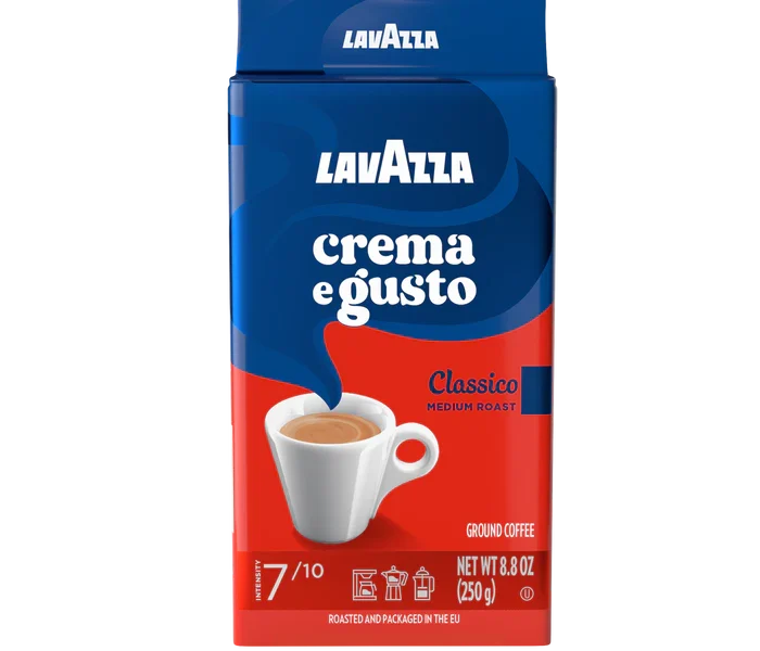 Lavazza Crema e Gusto malta kava, 250 g — tai italų klasikinis maltos kavos mišinys, sudarytas iš Arabica ir Robusta pupelių, kurios kartu sukuria sodrų, intensyvų ir aromatingą skonį. Ši kava pasižymi prieskoninėmis ir šokoladinėmis natomis, ir tiršta puta – būdinga itališkam espresso. Mišinys yra tamsiai skrudintas, todėl ypač tinka espresso aparatams, moka kavinukams.