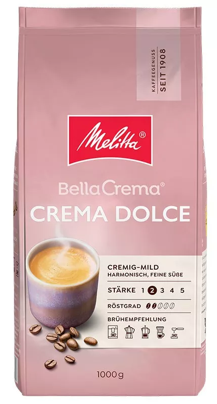 Melitta BellaCrema Crema Dolce – tai švelni ir harmoningai subalansuota kava, sukurta tiems, kurie vertina švelnų skonį ir natūralų saldumą. Ši 100 % arabikos pupelių kava pasižymi švelniu skrudinimu, kuris išryškina aksominę tekstūrą ir subtilias karamelės natas. Dėl savo švelnumo ir malonaus saldumo, ši kava yra puikus pasirinkimas tiems, kurie mėgsta švelnią ir aromatingą kavą.