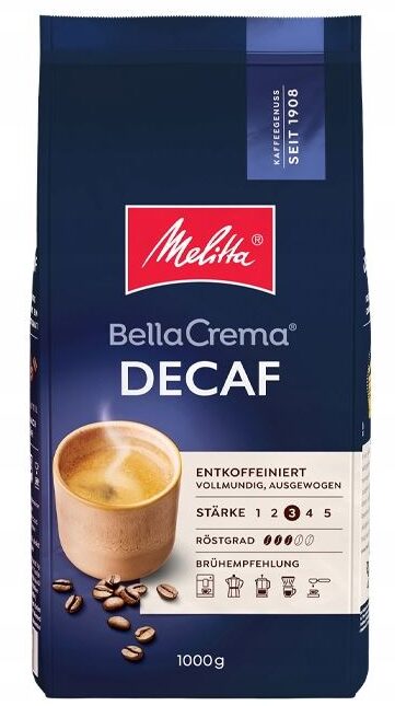 Melitta BellaCrema Decaffeinato – tai aukštos kokybės 100 % arabikos kavos pupelės be kofeino. Šios pupelės pasižymi subalansuotu, pilnaverčiu skoniu su lengvu saldumu ir vaisiškumu, todėl yra puikus pasirinkimas tiems, kurie nori mėgautis skania kava be kofeino. Kava tinka ruošti tiek espreso, tiek pieno pagrindu pagamintus gėrimus, tokius kaip kapučinas ar latte.