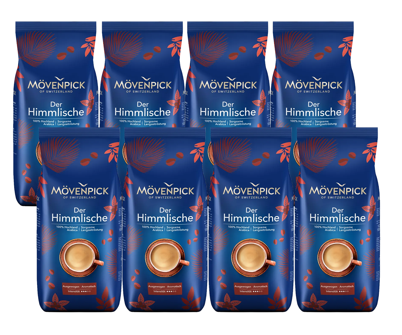 Mövenpick Himmlische pupelės – sėkmės receptas – geriausias skonis 60 metų. Mövenpick kavos sėkmės istorija prasidėjo atidarius pirmąjį Movenpick restoraną Ciuriche. Jau po kelerių metų kilo mintis restorano klasika pasiūlyti mėgautis namuose. 1963 metais Movenpick išleido pirmąją kavą Šveicarijoje. Net jau ir tada ji buvo gaminama iš grynų arabikos pupelių ir parduodama pavadinimu Der Himmlische (liet. Dangiškoji). Rinktinės 100% Arabica kavos pupelės, surinktos geriausiose pasaulio aukštikalnių plantacijose, suteikia šiai kavai nepakartojamą skonį, o specialus skrudinimas, ypatingą aromatą. Tai kava, atspindinti harmoniją tarp skonio ir sodraus aromato.